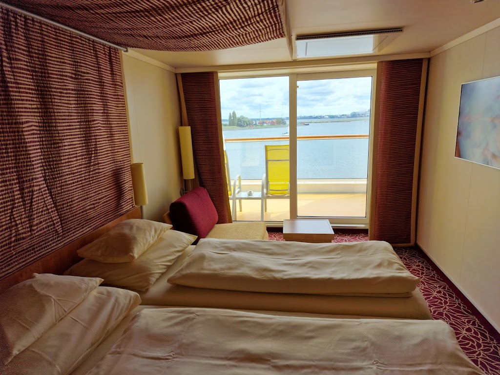 Jetzt mal eben aufs Schiff. Nee, doch nicht. Erst die Sicherheitskontrolle. Also Taschen leeren: Portemonnaie, Autoschlüssel, Wohnungsschlüssel, Kleingeld, Handy, Parkticket etc., aus den Hosentaschen in die Schale und den Gürtel auch noch. Als ich Frage ob ich mein altes Tempo noch dazu legen soll, werde ich komisch angeschaut??? Jetzt aber, Handgepäck auf die Kabine, dann einen Burger im Restaurant und danach einen Aperol Spriz oben an Deck.