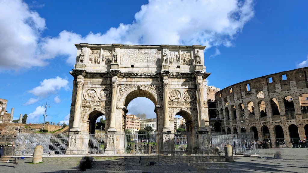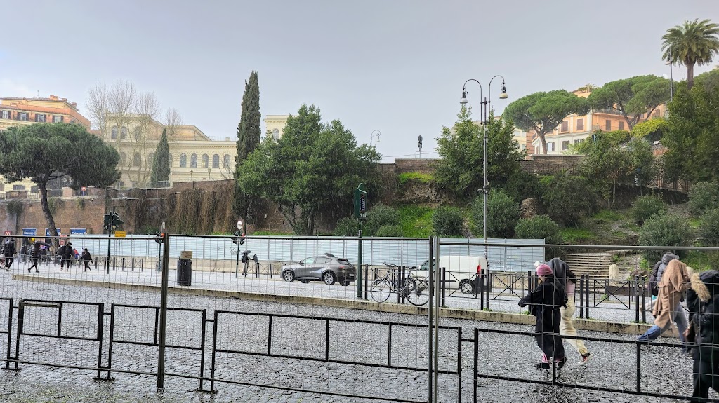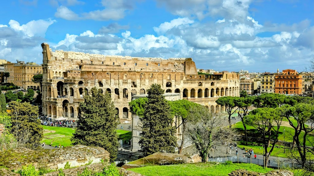 Nach dem Frühstück machen wir uns auf den Weg zum Colosseum. Rechts des Weges sehen wir schon das Forum Romanum und darüber der Palatin. Natürlich gut organisiert haben wir die Tickets dafür und fürs Colosseum schon auf dem Handy.