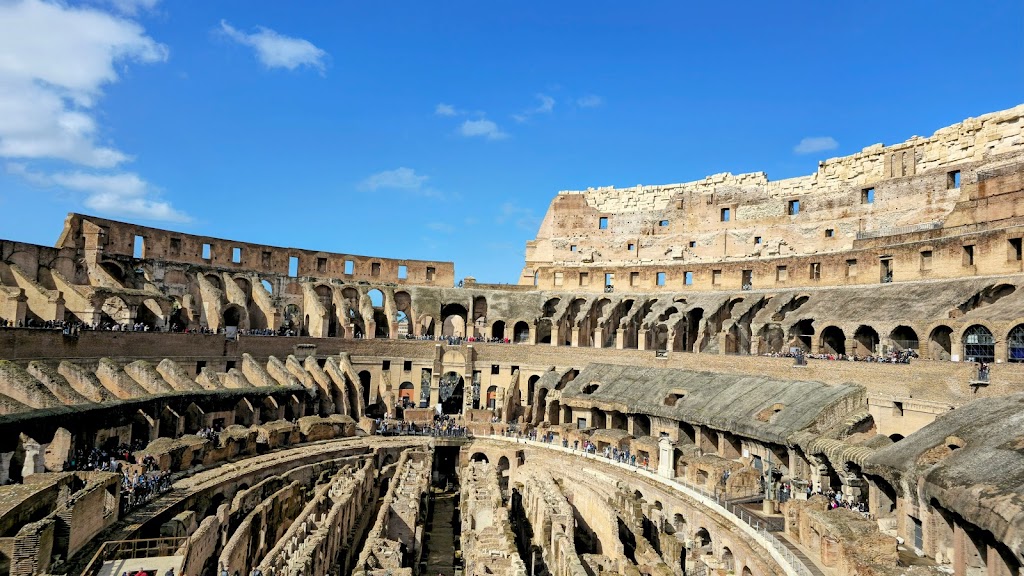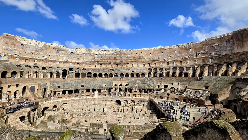 Puh, alles richtig gemacht. Zehn Minuten später reißt der Himmel auf und die Sonne scheint am blauen Himmel, als wäre nix gewesen. Der Rundweg durch die Tribünen der Arena ist vorgegeben. Ein paar andere Touris hatten auch noch die Idee, mit der Besichtigung. Aber durch die vorgegebenen Zeitfenster beim Einlass, ist es nicht zu voll. An jeder Ecke wartet noch ein besserer Fotopoint.