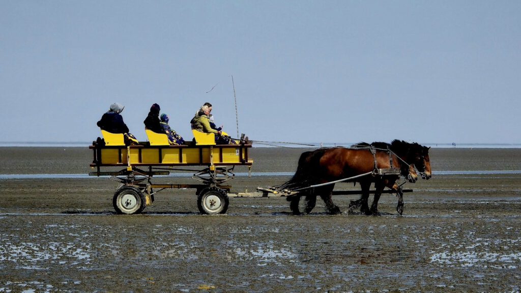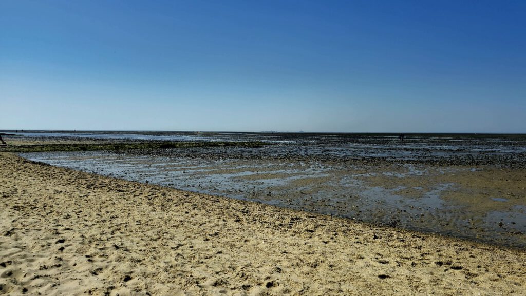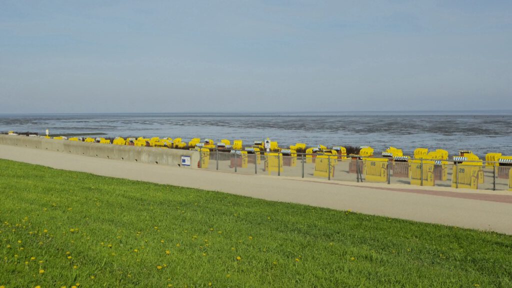Aber „Watt“ fehlt, kein Wasser im Meer. Hat wohl jemand den Stöpsel gezogen, halt Wattenmeer. Nach dem Frühstück auf an den Strand. Wir hören den Strandkorb schon rufen. Beim Weg über den Deich ruft eine Damenstimme mir hinterher, wohin möchten sie „junger Mann“? Geschmeichelt drehe ich mich rum, aber die Dame im Strandkorb, möchte nur meine Kurkarte sehen. Der Sandstrand ist wirklich toll hier, aber immer noch kein Wasser.
