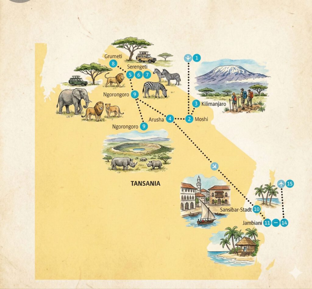 Ankunft & Tore zum Abenteuer Kilimanjaro International Airport: Der zentrale Ankunftsort für internationale Besucher, die den Kilimandscharo besteigen oder die Nationalparks im Norden Tansanias erkunden möchten. Arusha: Bekannt als das „Tor zur Safari“. Die Stadt…