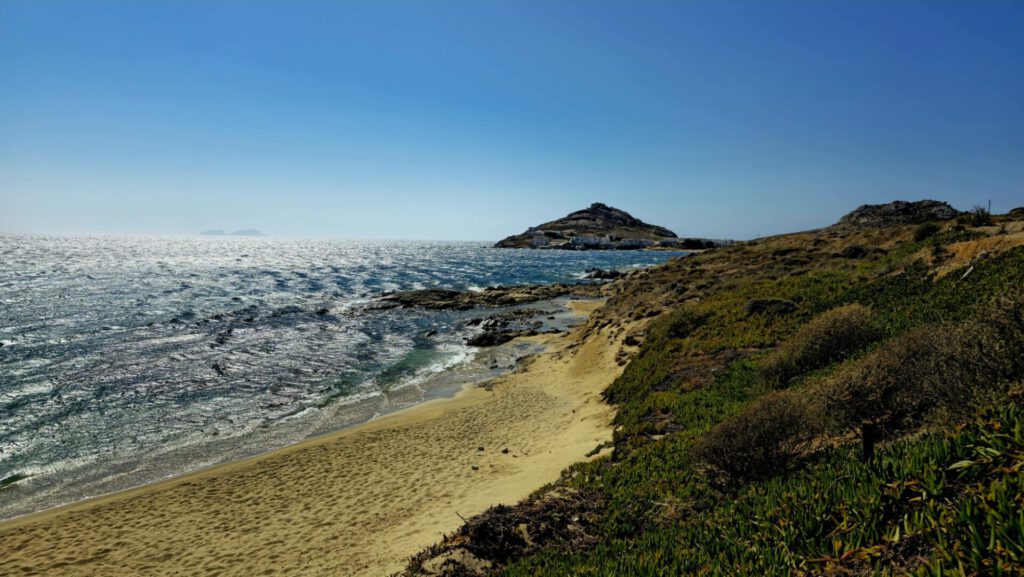 Heute mit dem Auto unterwegs. Die Insel hat eine Länge von 14 km und eine Breite von 10 km. Da soll ein Tag wohl reichen. Auf dem Weg nach Ano Mera kommen wir nach ein paar ungewollten Schlenkern am Strand Paralia Kalio Livadi vorbei. Muss erstmal für ein paar Fotos reichen, später wartet noch eine Bucht zum baden.