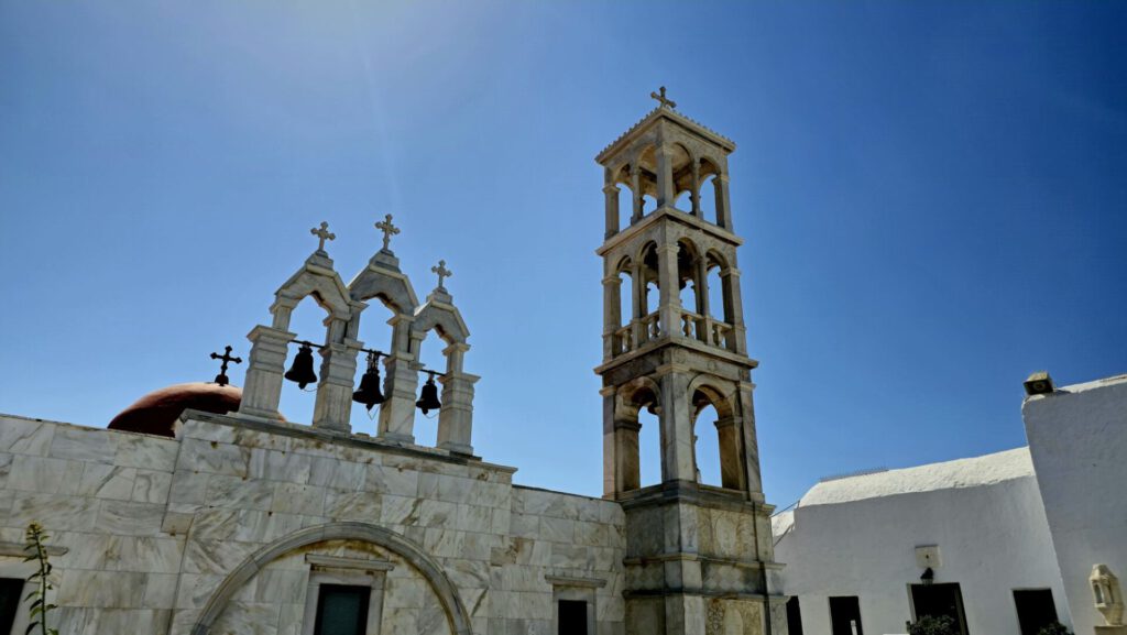 Dann zurück nach Ano Mera wo wir dem Kloster Tourliani einen Besuch abstatten. Das Kloster wurde im 16. Jahrhundert von 2 Priestern gegründet und beherbergt in der oberen Etage ein kleines Museum. Das Innere des Klosters ist reich geschmückt und die Ikonen sind echt beeindruckend.